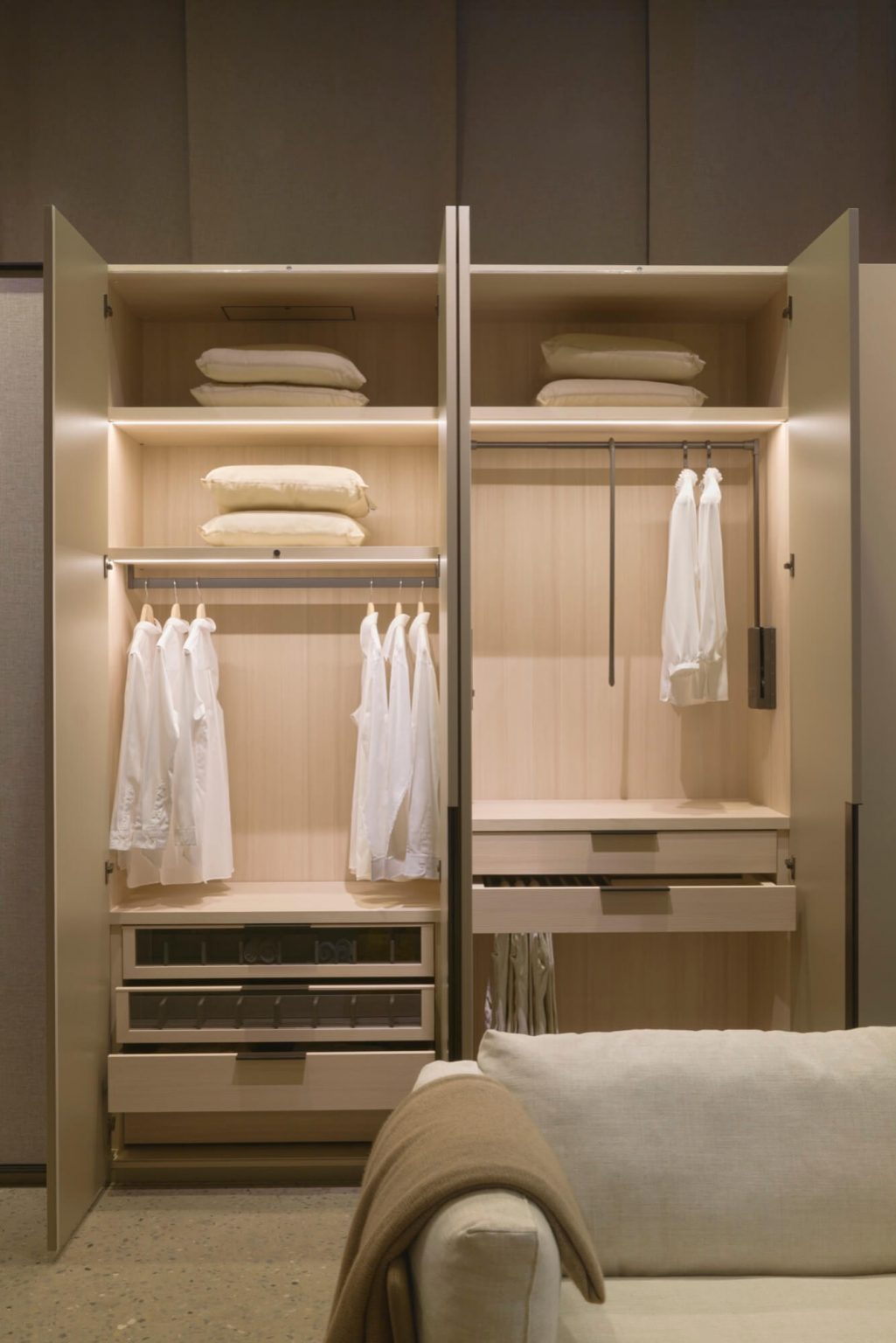 Visit our Lema showroom today to explore our latest designs and discover how our seamless, made-to-measure solutions can transform your closet into an organized, stylish haven.