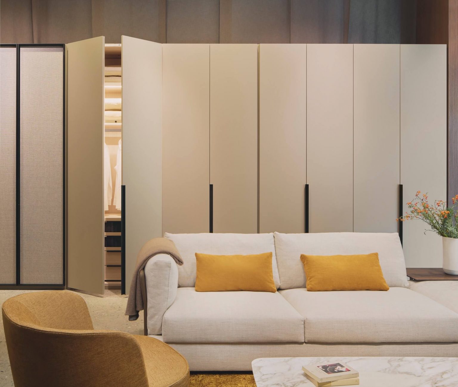 Indulge in our bespoke modular systems, tailored to your every desire. From seating and soft furniture to tables, storage, beds and accessories, our team of experts will guide you through the latest collection and help you create a space that’s comfortable, efficient and uniquely yours.