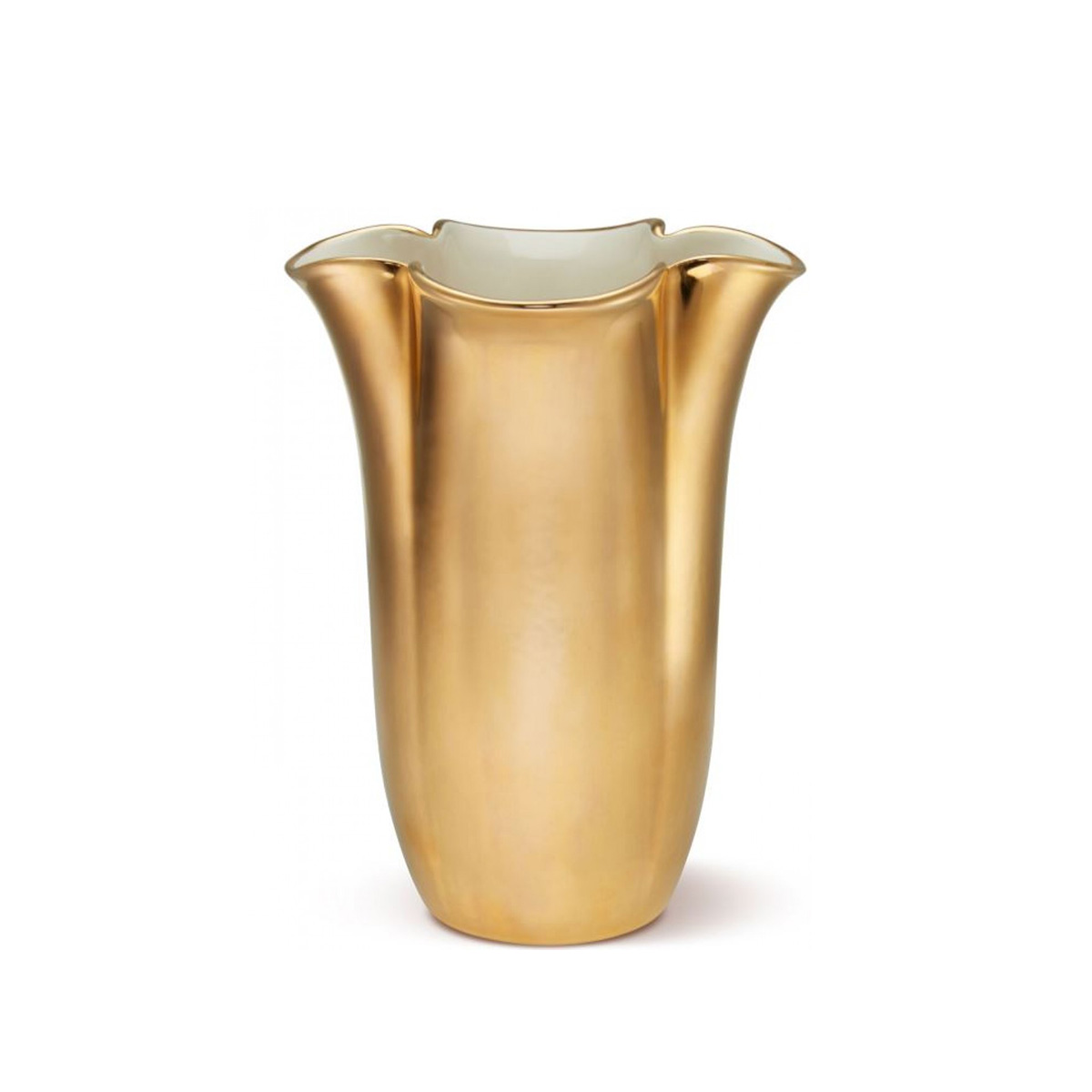 Crafted in Italy, this hand-painted gold vase with a cream interior has a pinched design that was inspired by a vintage piece. Ideal for longer-stemmed flowers, such as roses or lilies.