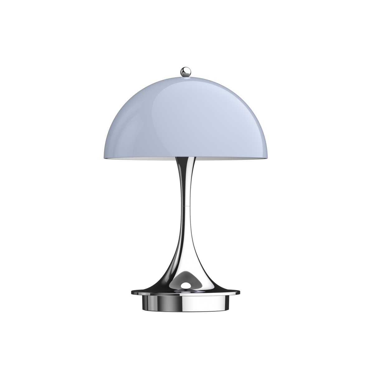 The fixture lights up any space harmoniously without glare. The portable table lamp is available with an opal shade, where the transparency and the reflection of the downward light on the inner side of the shade provide gentle illumination and a subtle ambiance.