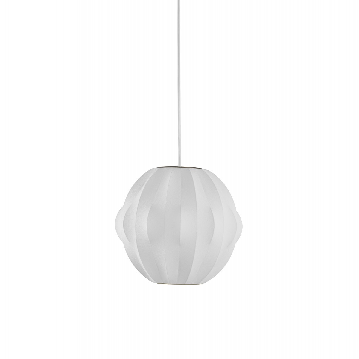 The Nelson Orbit Bubble Pendant has a striking presence with its recognizable but inimitable shape. This sculptural pendant light comes in two sizes and has a unique steel understructure.