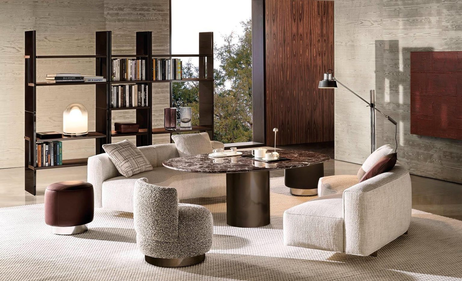 CHANINTR highlight: Lou Dining Table (Round) by Minotti, with its organic shape reminiscent of a tree trunk and sleek, elegant finish, brings sculptural appeal to your dining space.