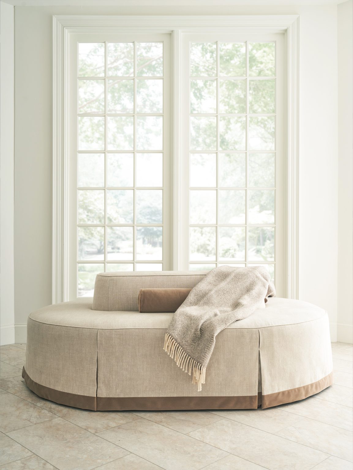 CHANINTR highlight: Peplum dining table by Baker Furniture, with its gently scalloped pedestal base and refined silhouette, sets the tone for a timeless look rooted in modern sophistication.