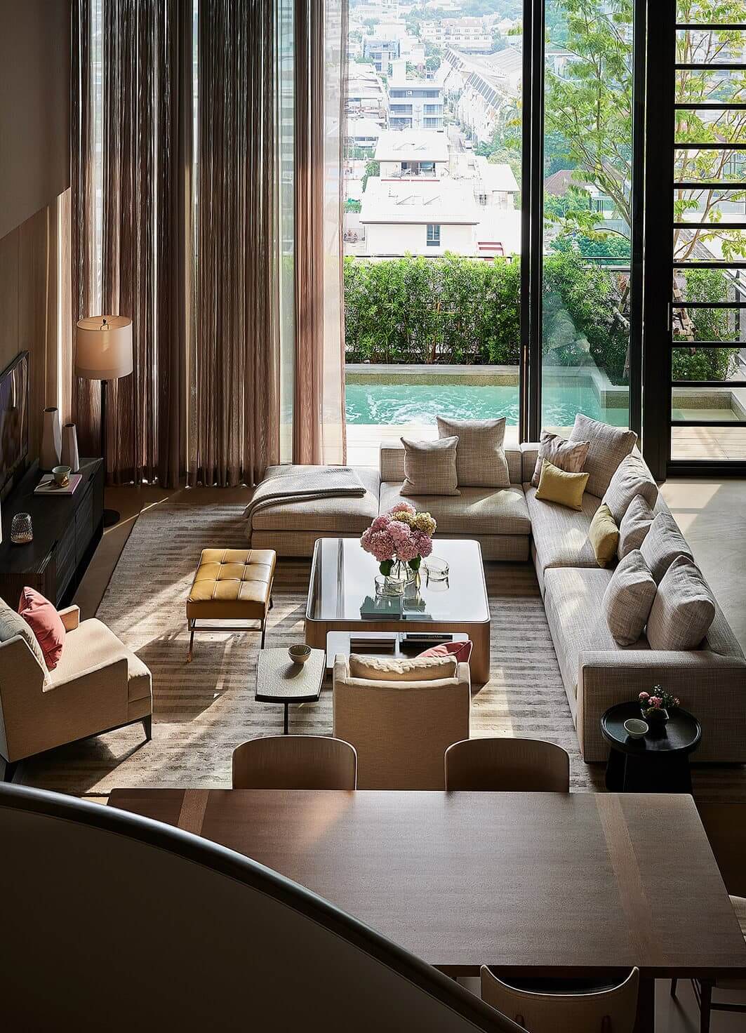 In the spirit of cosmopolitan design comes this well-appointed, 450-square-meter duplex apartment by AD100 designer Barbara Barry. The California native drew inspiration from the subtle colors and textures of her home state to create a space at WINDSHELL that is warm and inviting with her signature style of casual elegance.