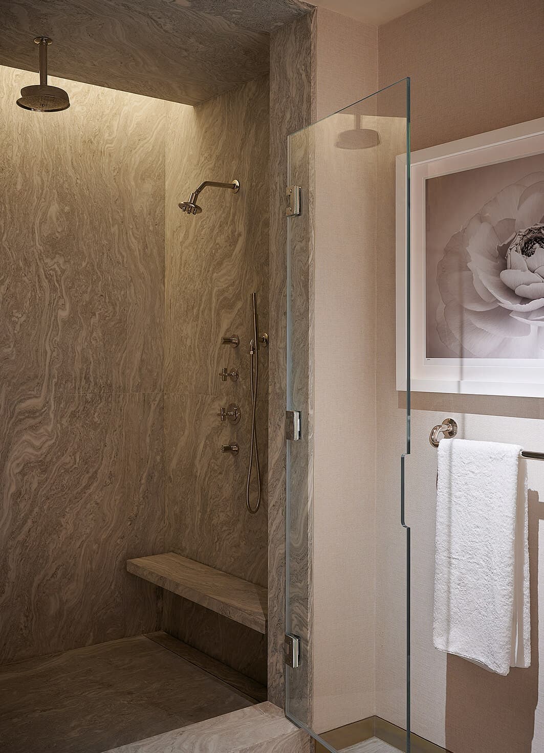 12BB Duplex exudes a feeling of calm in the midst of the city with hand-selected furniture and accessories by Barbara Barry. A lushly planted entry patio, grand living room with floor-to-ceiling windows, library, open kitchen area and plunge pool on the first floor makes it the perfect setting for unwinding and entertaining.