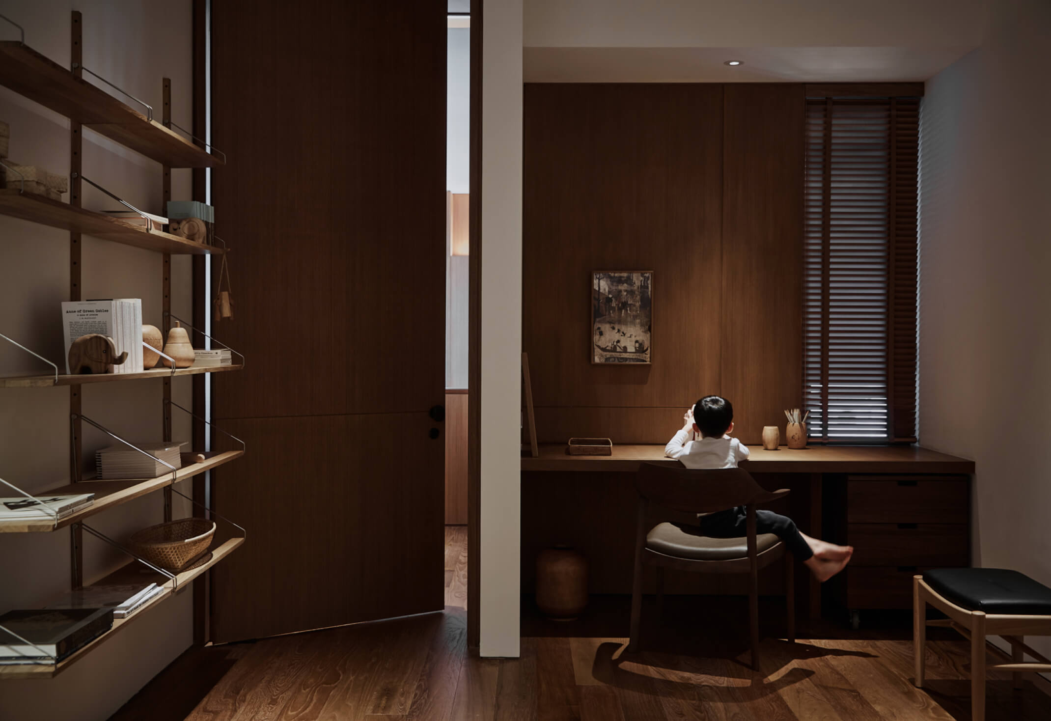 Designer-architect Albano Daminato, founder of STUDIO DAMINATO, is the energy behind the duplex. Known for his ability to bridge modernity, familiarity and relevance with elan, the AD100 designer and his team have created a series of thoughtfully integrated living spaces: The lower level houses a double-height living and dining salon, two kitchens, an intimate media lounge, guest room, powder room and outdoor terraces with a sunset-facing plunge pool. The floor above accommodates the master bedroom suite, with separating dressing zones and a secluded outdoor deck; a children's bedroom suite is located at the end of the walkway. The resulting space is a quietly sophisticated private home in the center of Bangkok.