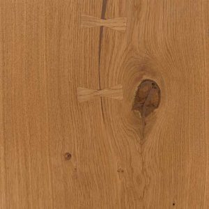 Natural cracks are preserved and locked with butterfly joints of oak, which gives the oak floorboards a powerful expression. Combined with the knots, it complements an exceptional look. Unique wide plank flooring that lets nature unfold in all its beauty.