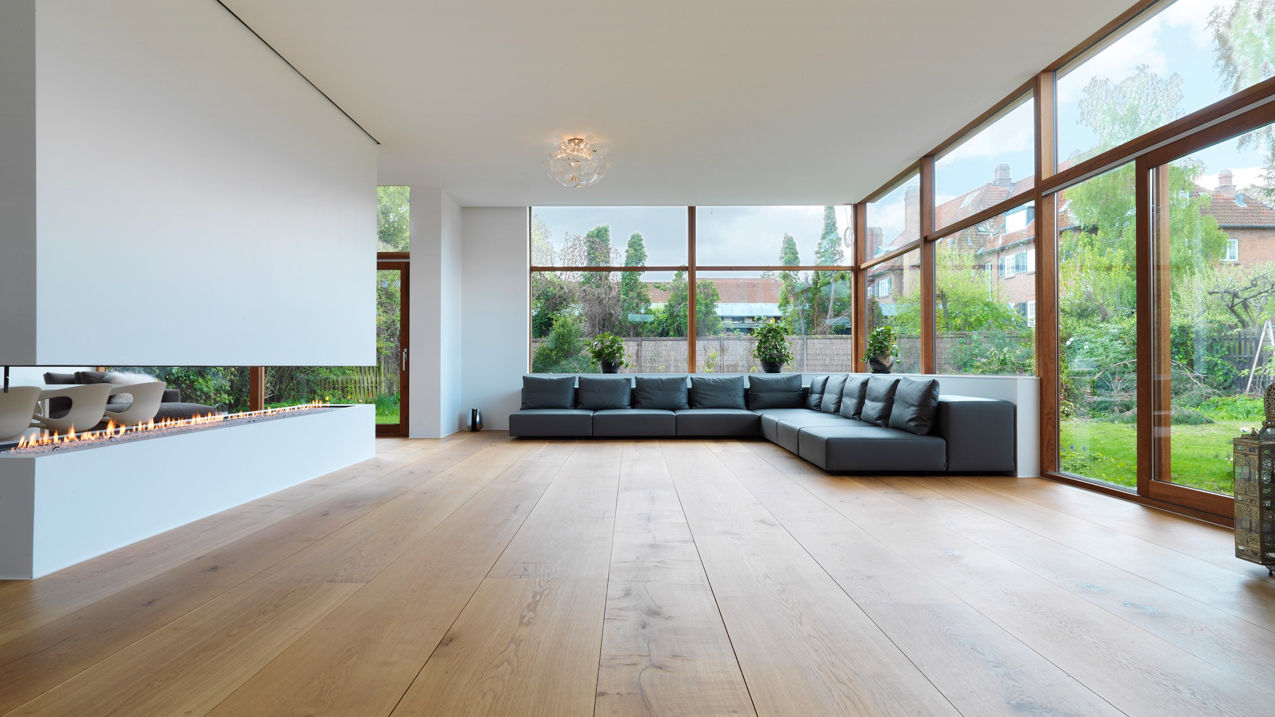 A Douglas plank floor creates a highly elegant and harmonious expression due to the extraordinary dimensions. An extravagant solution with clear references to the majestic Douglas tree.