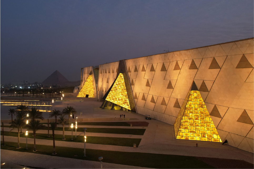 Located approximately two kilometers from the Great Pyramid of Khufu, GEM is not simply another museum. Architecturally ambitious, the design aligns with the three pyramids of Giza and uses a striking façade of translucent stone panels that gently filter daylight. Covering some 5.2 million square feet and set on a site of nearly half a million square meters, GEM is poised to become the largest archaeological museum devoted to a single civilization. It will house over 100,000 artifacts, including — at last — the full treasures of Tutankhamun for the first time.